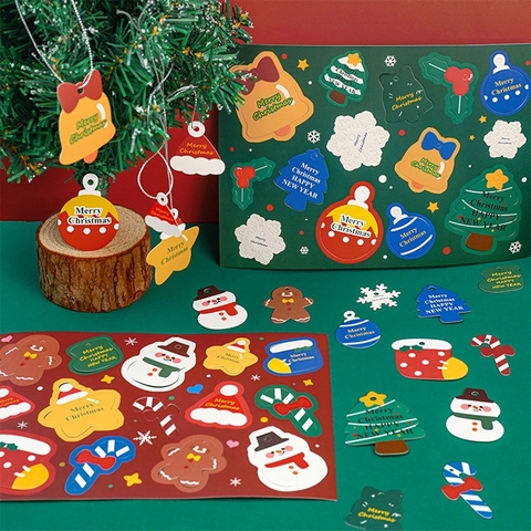 Set Dây Treo Gồm 14 Miếng Sticker Giấy Hoạt Hình Giáng Sinh Noel Trang Trí Hộp Quà Treo Cây Thông