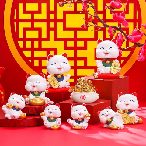 Tượng mèo thần tài trắng khăn xanh 3 size chất liệu PVC nhiều kiểu dáng độc đáo trang trí phòng khách, nhà cửa, quà tặng